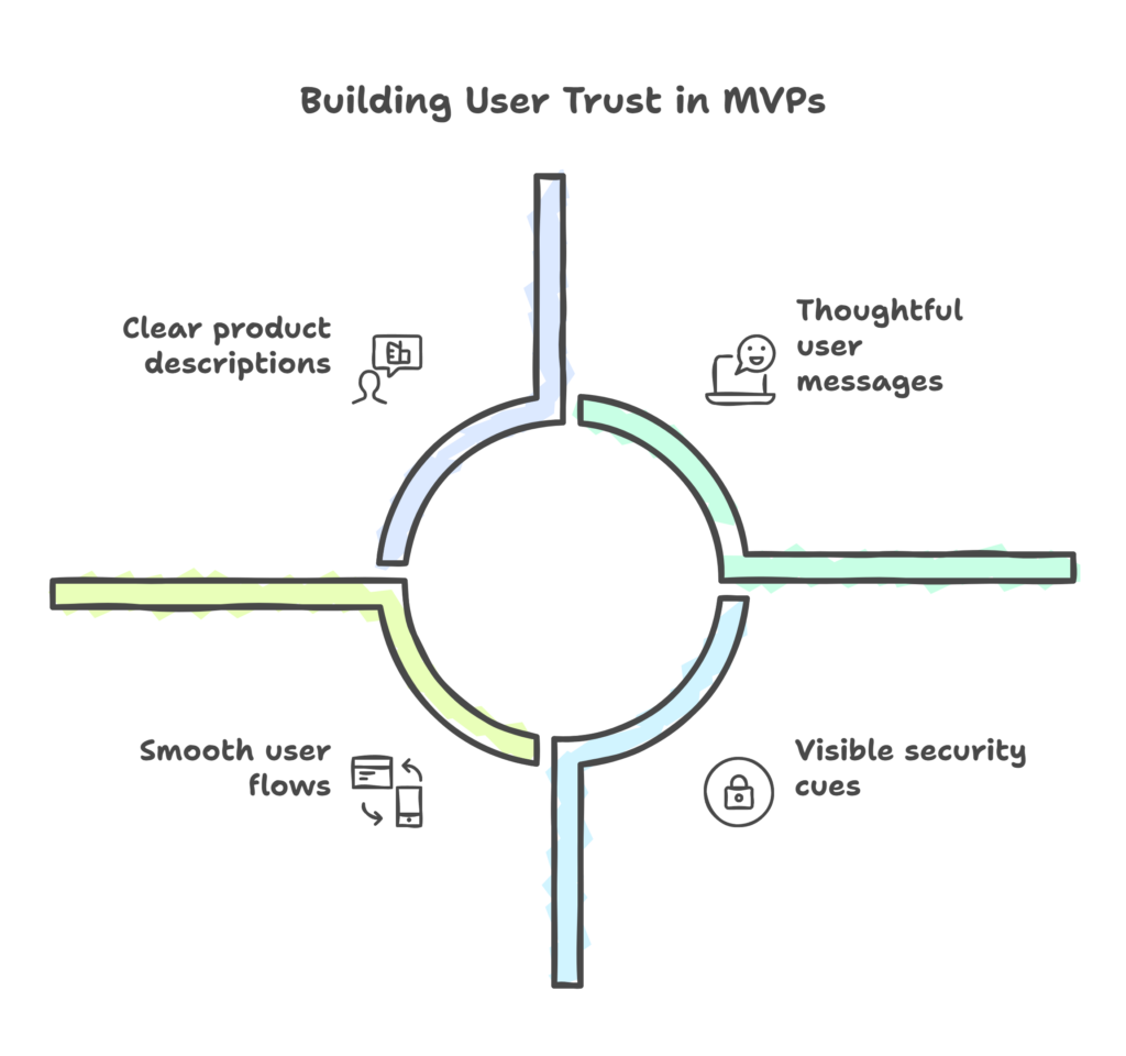If you want people to use your MVP, you need trust, you’ve got to think beyond features. Trust is psychological. It’s what users feel after a series of consistent, positive interactions with your product. That trust gets stronger when your MVP feels credible, easy to use, and secure.